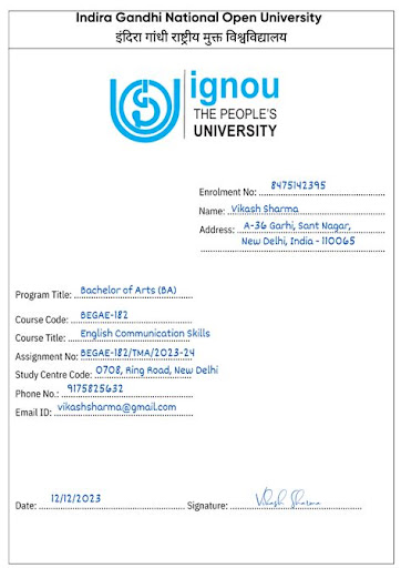 La portada de la asignación de IGNOU debe incluir la siguiente información:
